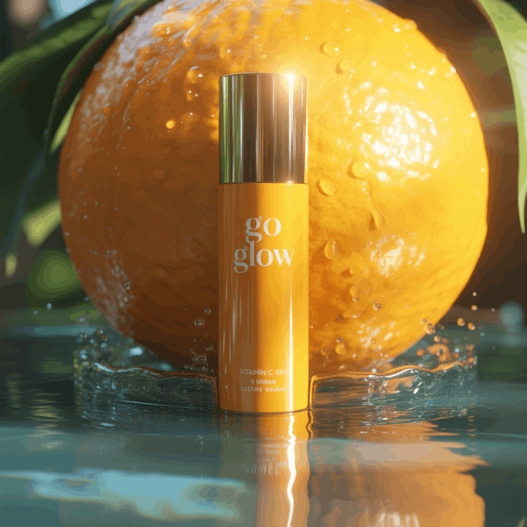 die Creme steht auf einem Marmorwaschtisch, daneben Wassertröpfchen im Morgenlicht – das Licht fällt weich, die Atmosphäre wirkt hochwertig.